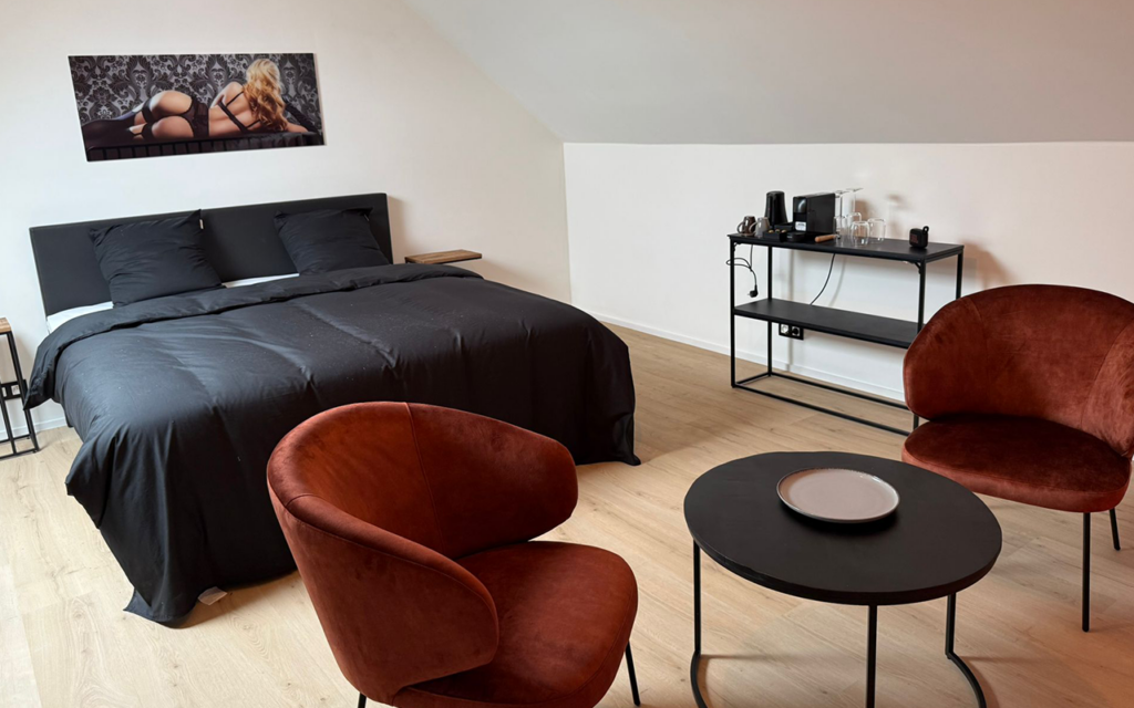 Een plek waar discretie, comfort en gastvrijheid moeiteloos samenkomen. Onze stijlvolle kamers zijn veelzijdig ingericht – ideaal voor wie op zoek is naar rust, ontspanning of een meer intiem moment.